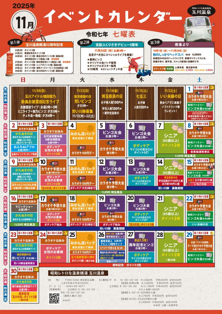 11月30日 開湯記念&玉川の日ポイント3倍(最高6倍)