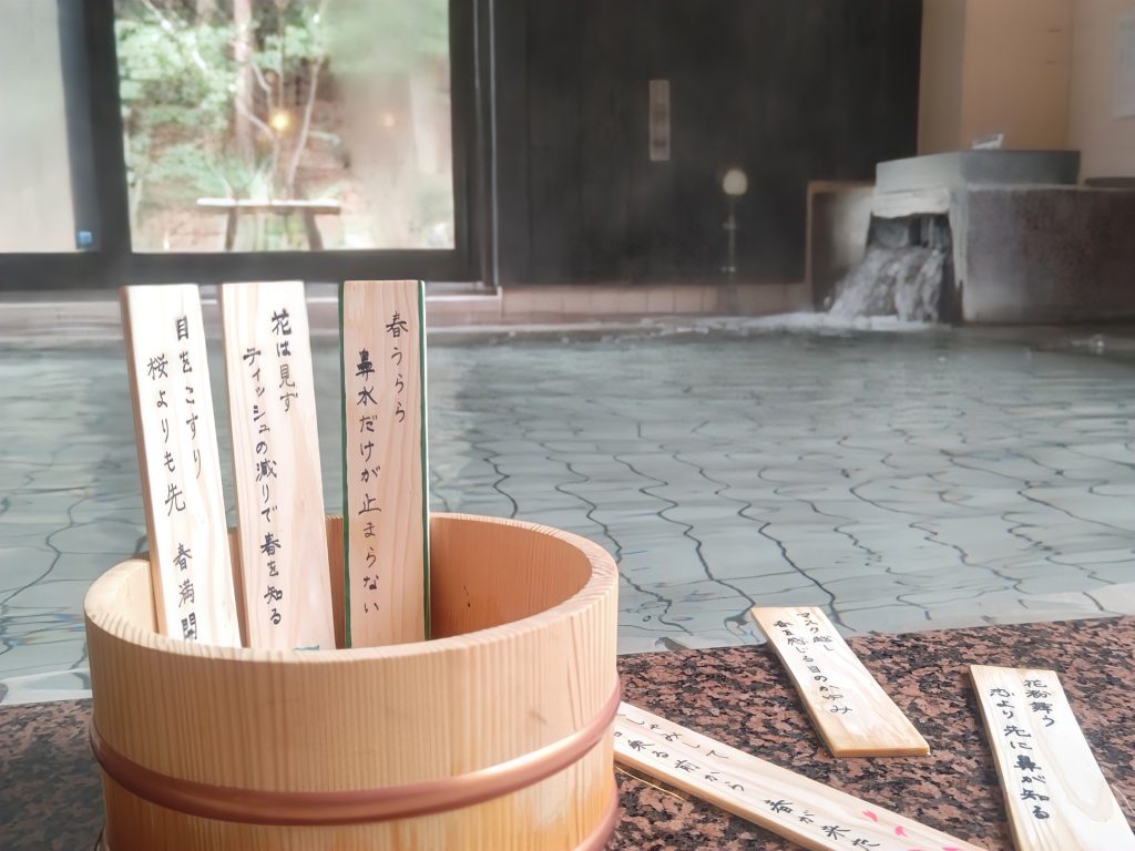川柳に見立てた杉の木がお風呂に浮かびます。
