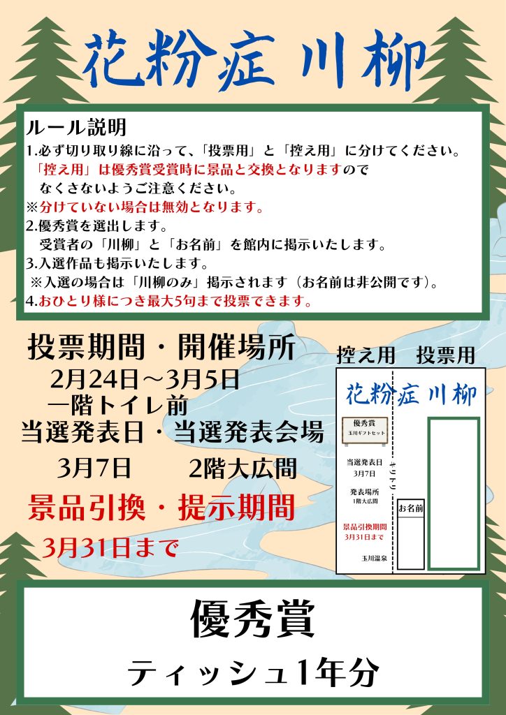 お客様から花粉症に関連した川柳を募集いたします。