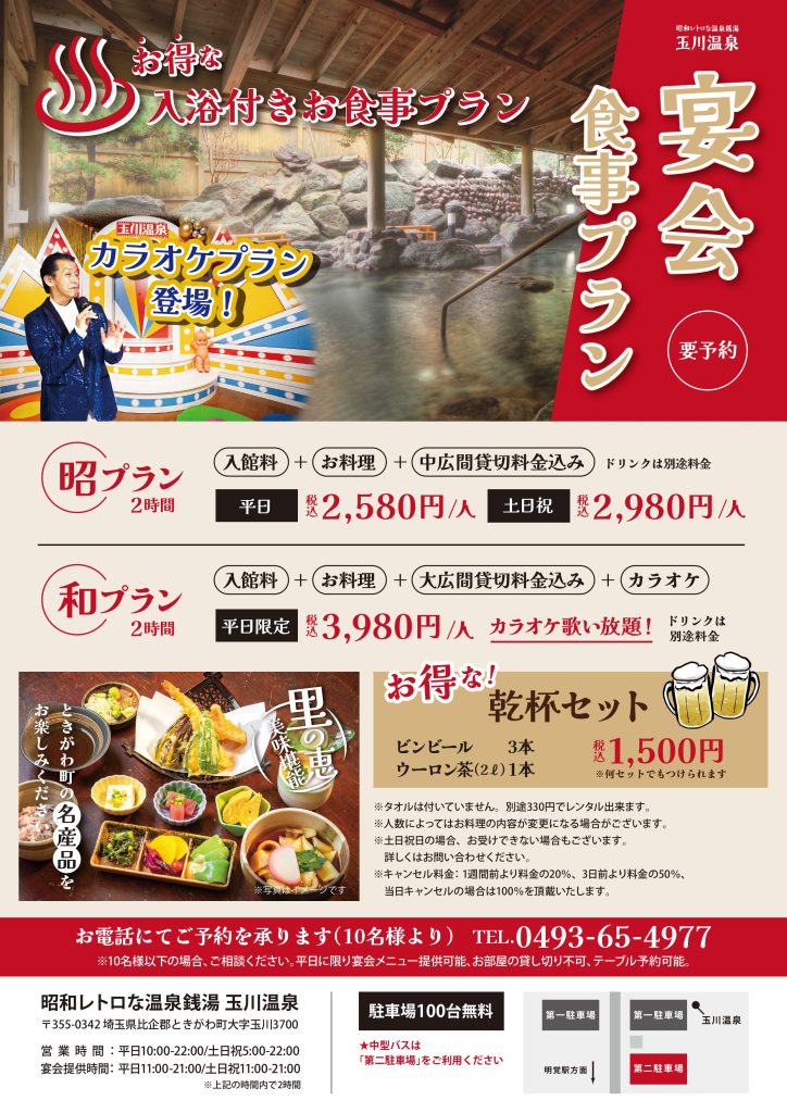 入館料+お料理+大広間貸切+カラオケ歌い放題(時間内)※ドリンクは別